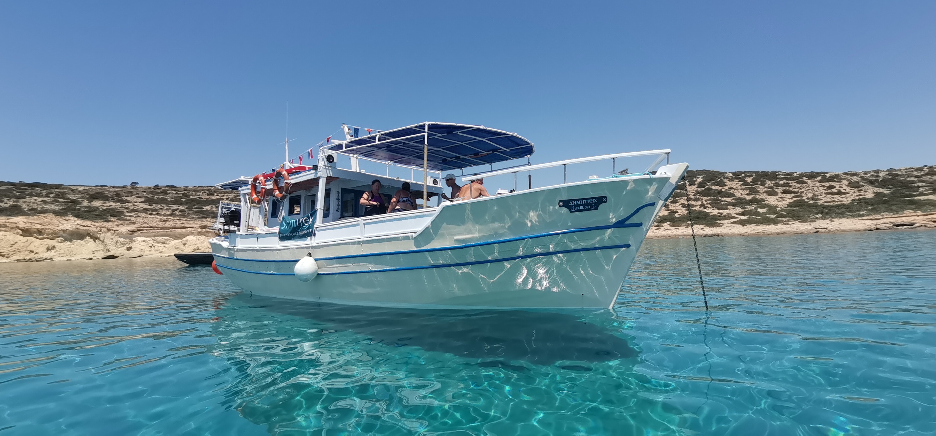 Daily Cruises, with our comfortable wooden traditional vessel, start everyday from Agia Anna Beach Port at 09:30 am, traveling towards the south coast of the island.